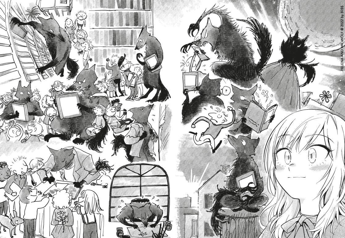 Pour débuter, j’ai choisi la série courte en 2 tomes Héléna & Mr. Wolf de l’autrice taïwanaise BliSS. Elle a été publiée par les éditions Mahô en février 2025, avec la parution simultanée des deux tomes, ainsi qu’une édition coffret avec quelques bonus.