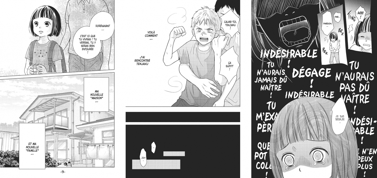 Résumé : Victime d’une mère violente, Yoru a été placée dans un foyer pour enfants. Elle y rencontre Tenjaku, un garçon de son âge au passé aussi compliqué que le sien. Si la petite fille a d’abord du mal à s’adapter à sa nouvelle « maison », elle finit, grâce à la protection de ce dernier, par y trouver son équilibre. Mais à l’approche de la majorité, comment ces deux êtres meurtris par la vie réussiront-ils à s’intégrer à la société ?